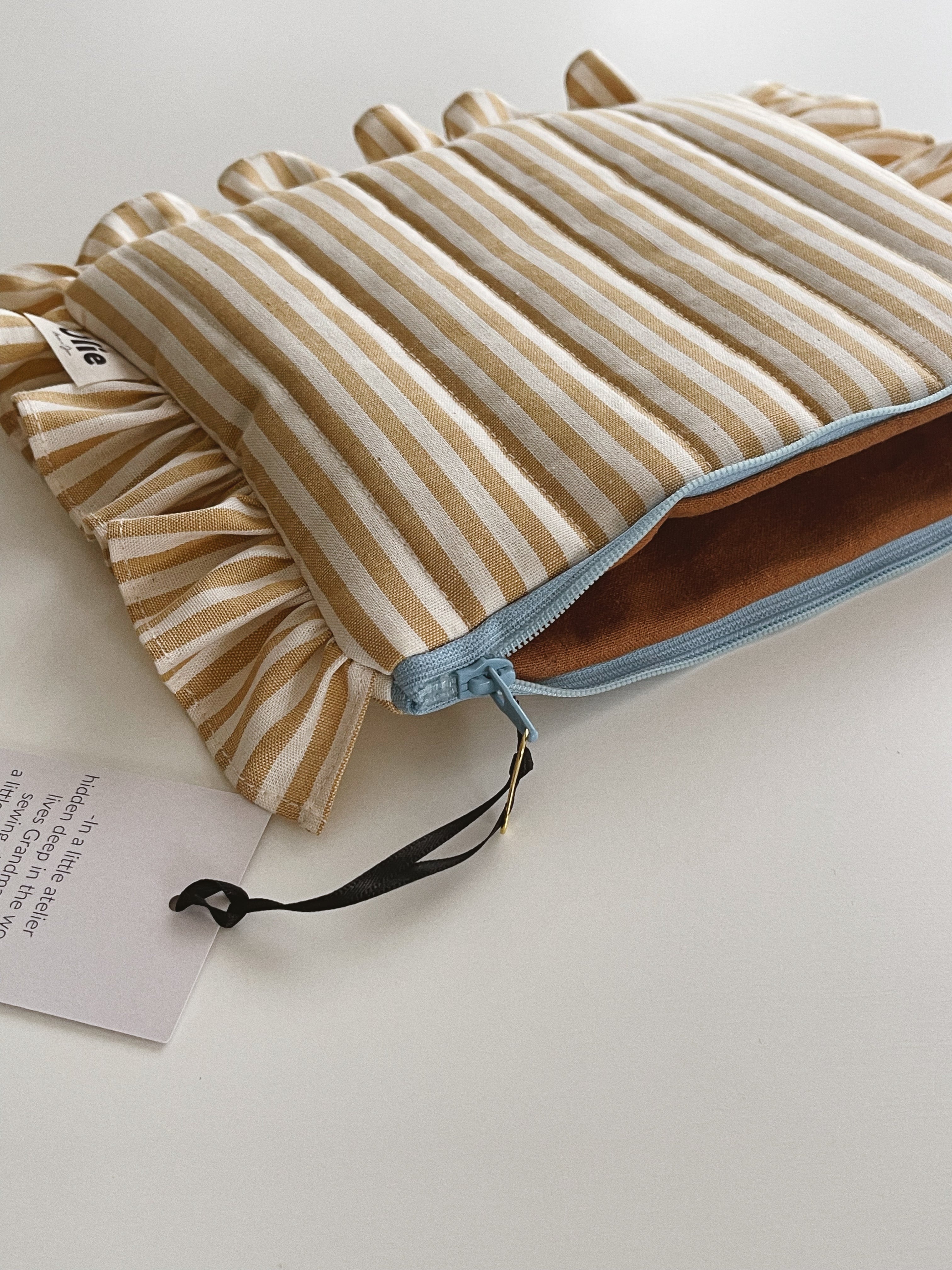 Each pouch comes with a different lining and zipper combination.