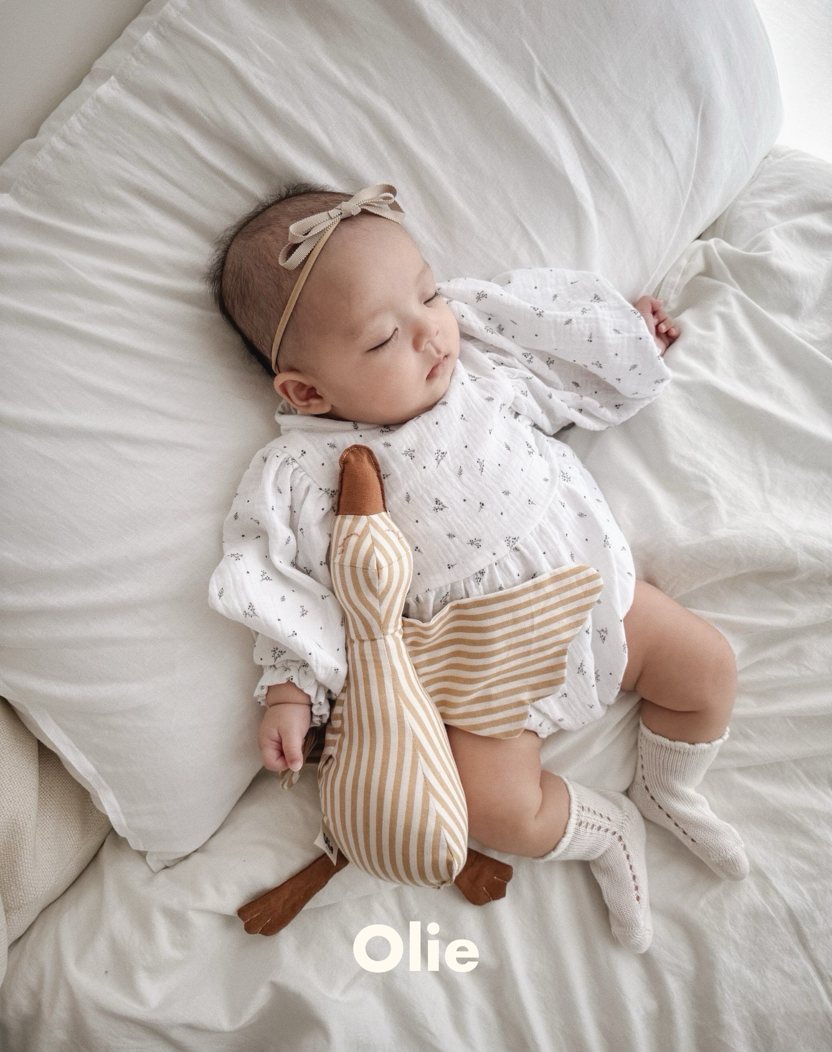 フランス産エコテックス認証を受けた生地を使用したふんわりボリュームのあるお袖の長袖ロンパース 。