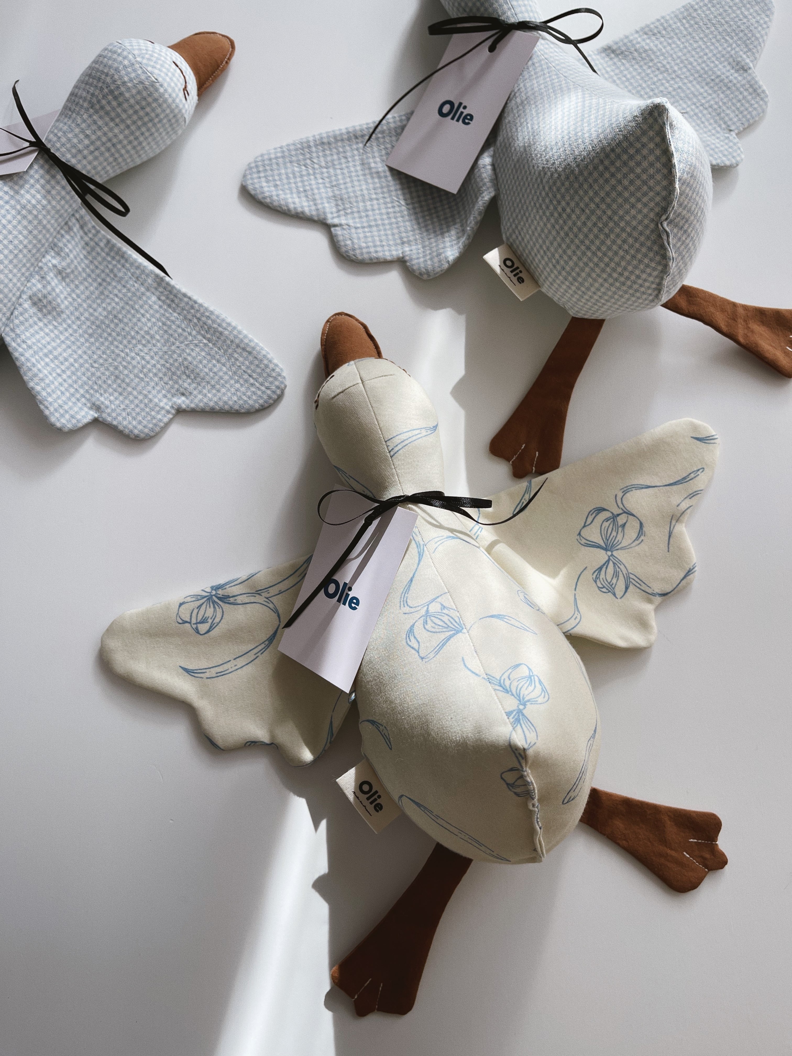 Each goose soft toy is handmade in a variety of patterns.